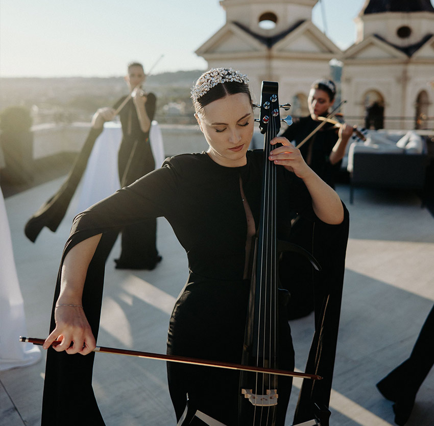 Our roster brings together selected professionals active in international festivals, theatrical productions, and luxury brand shows. A string section configurable from solo violin to full quartet, vocalists mastering registers from disco and soul to pop and R&B, a show band with drummer, percussionist, guitarist, and saxophonist, and DJs with tailor-made sets built around your guests’ profile. Every setlist is carefully curated and tailored to match the character of the event, the guest profile, and the atmosphere you want to create.